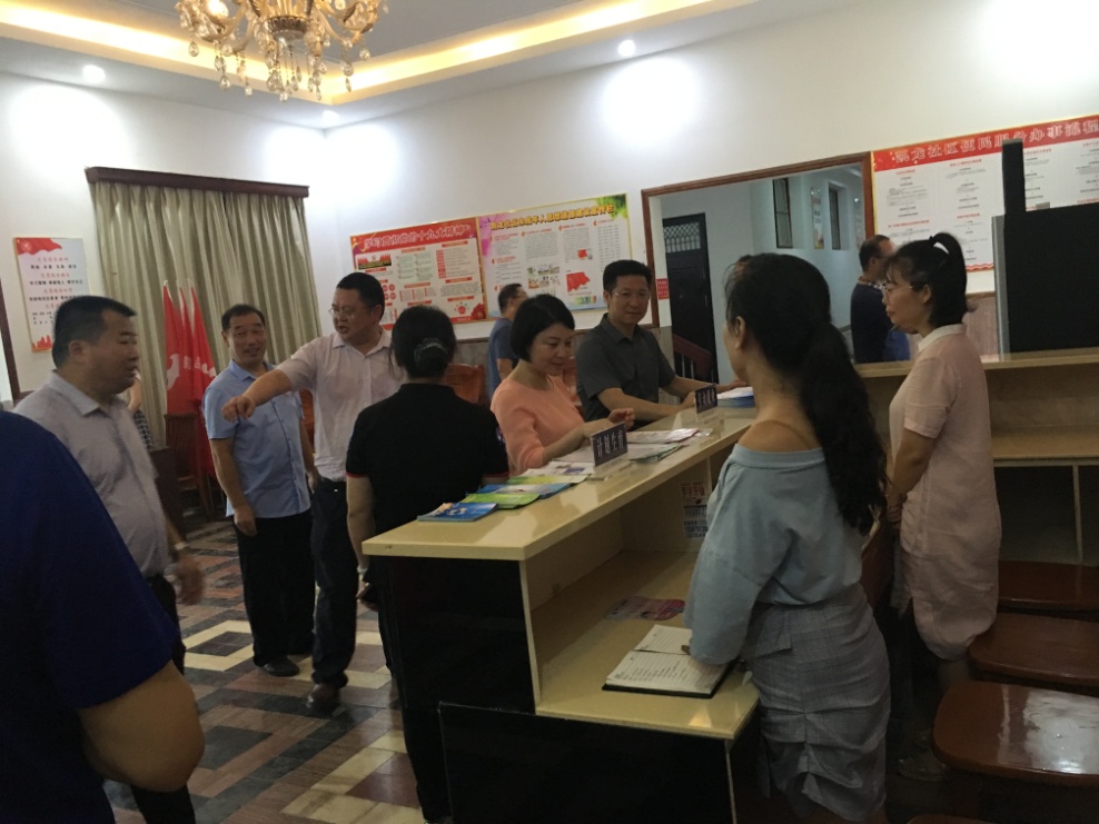 區(qū)領導向社區(qū)工作人員了解社區(qū)開展創(chuàng)城情況